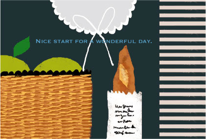 今日はピクニック。バスケットにお皿とマグカップ、レースのナプキンも入れましょう。もちろん主役はバゲット。幸せな1日。